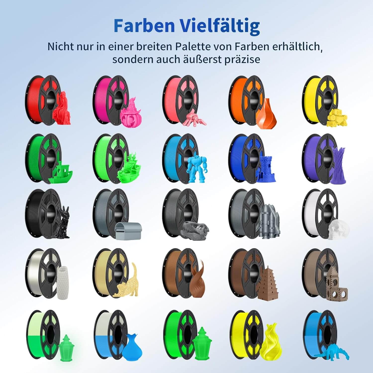 Das ANYCUBIC PLA ist in einer breiten Farbpalette erhältlich – von intensiven Standardfarben bis hin zu Spezialvarianten wie transparent oder seidenmatt. Die Farbtreue überzeugt in Tests, da die Drucke auch nach längerer Nutzung ihre Klarheit und Farbintensität behalten.