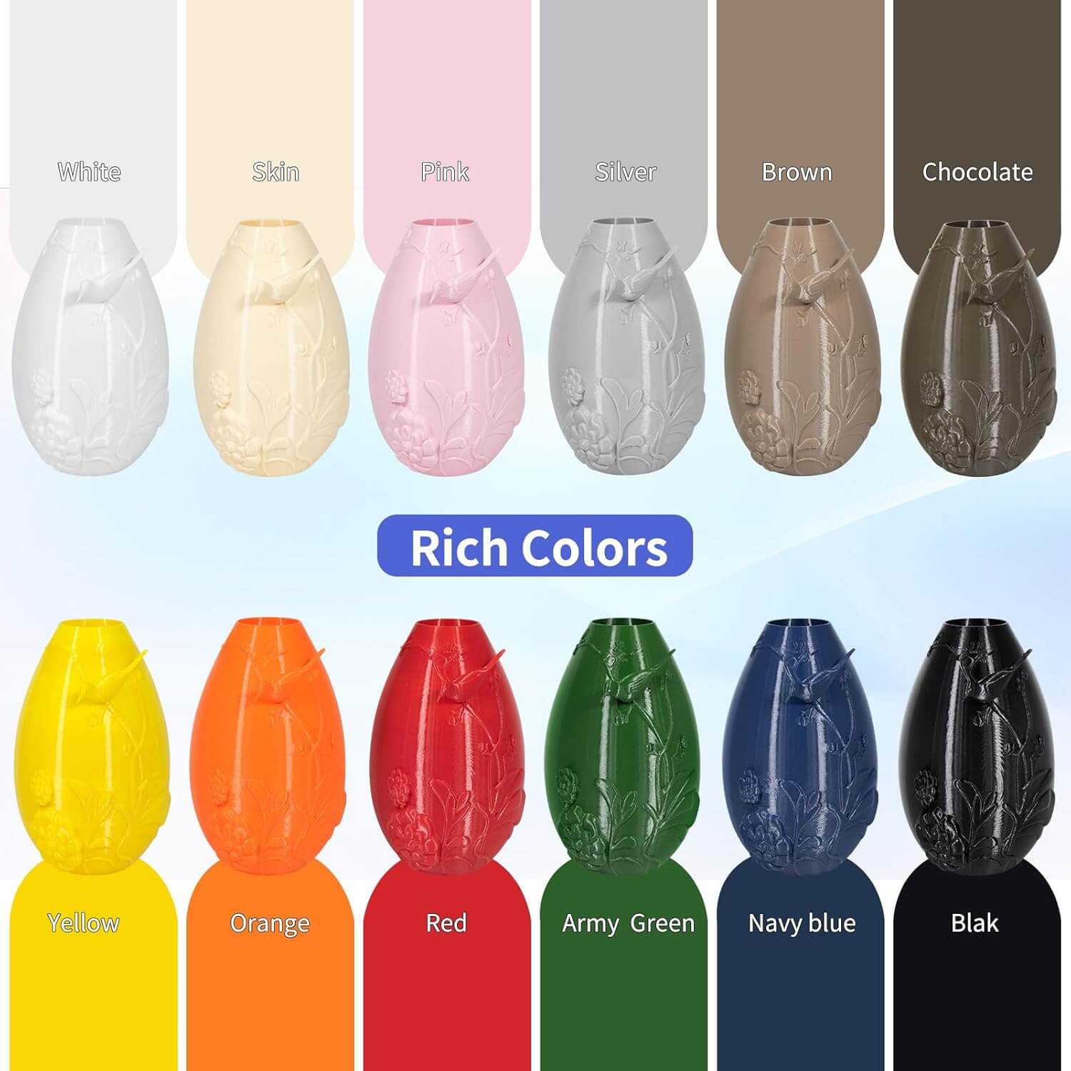 - 【Druckempfehlungen】 Drahtdurchmesser 1,75 mm ±0,02 mm, Drucktemperatur: 220–250 °C, Druckgeschwindigkeit: 30–100 mm/s, Druckbetttemperatur: 70–80 °C